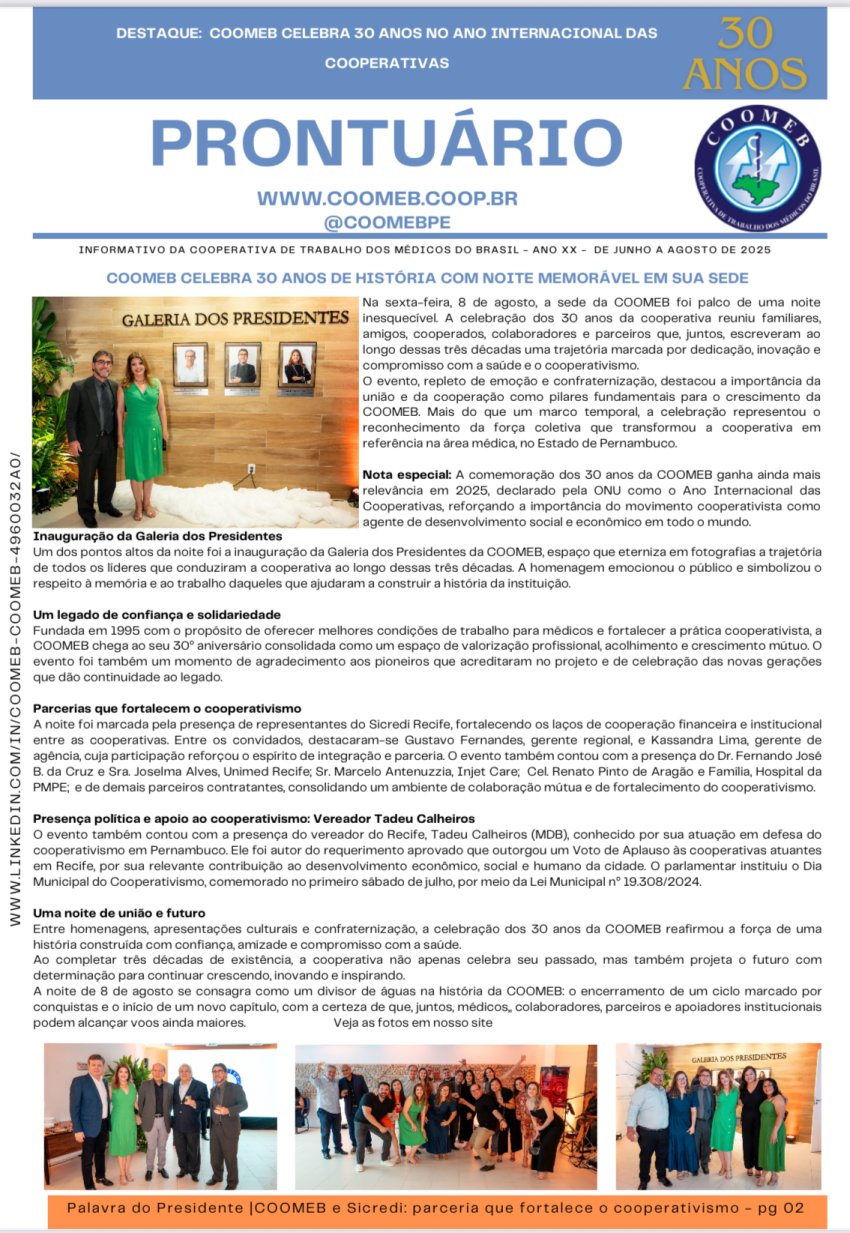 Para ler o material em alta qualidade, baixe o Prontuário Coomeb através deste link: Baixe aqui